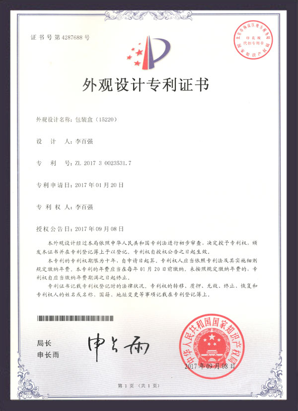 外观设计专利证书