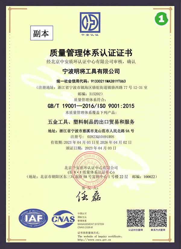 质量管理体系证书